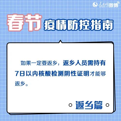 持核酸檢測陰性證明返鄉(xiāng)后不需要隔離,但需要進(jìn)行14天居家健康監(jiān)測,做好體溫、癥狀監(jiān)測,非必要不外出、不聚集,必須外出時做好個人防護(hù),并在返鄉(xiāng)后第7天和第14天分別做一次核酸檢測。